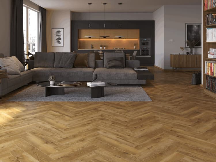 Новая коллекция ламината VILLE – это трендовые декоры в сочетании с непревзойденной элегантностью укладки «английская елка» и с аутентичной текстурой матового дерева. Этот вид укладки придает полу классический и элегантный вид, а также позволяет создать неповторимый интерьер в любом помещении.